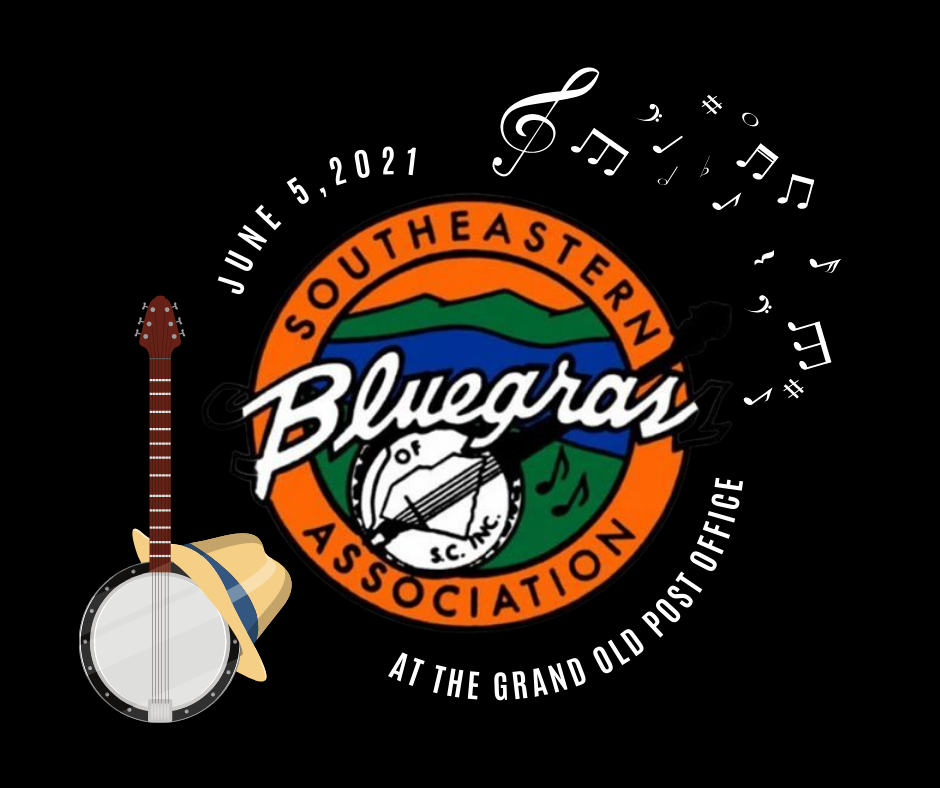 The South Eastern Blue Grass Association hosts its monthly Bluegrass concerts at The Grand Old Post Office. Doors open at 4:00 PM, featured bands go on at 6:00 PM