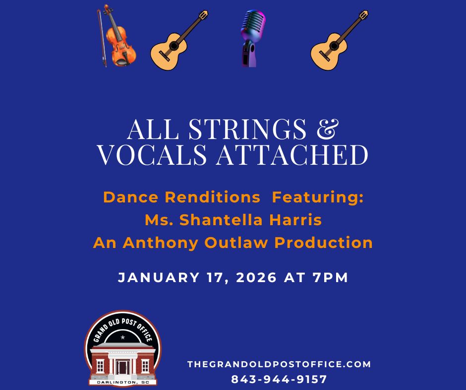 This order gives you (1) ticket for “All Strings and Vocals Attached” at the Grand Old Post Office!