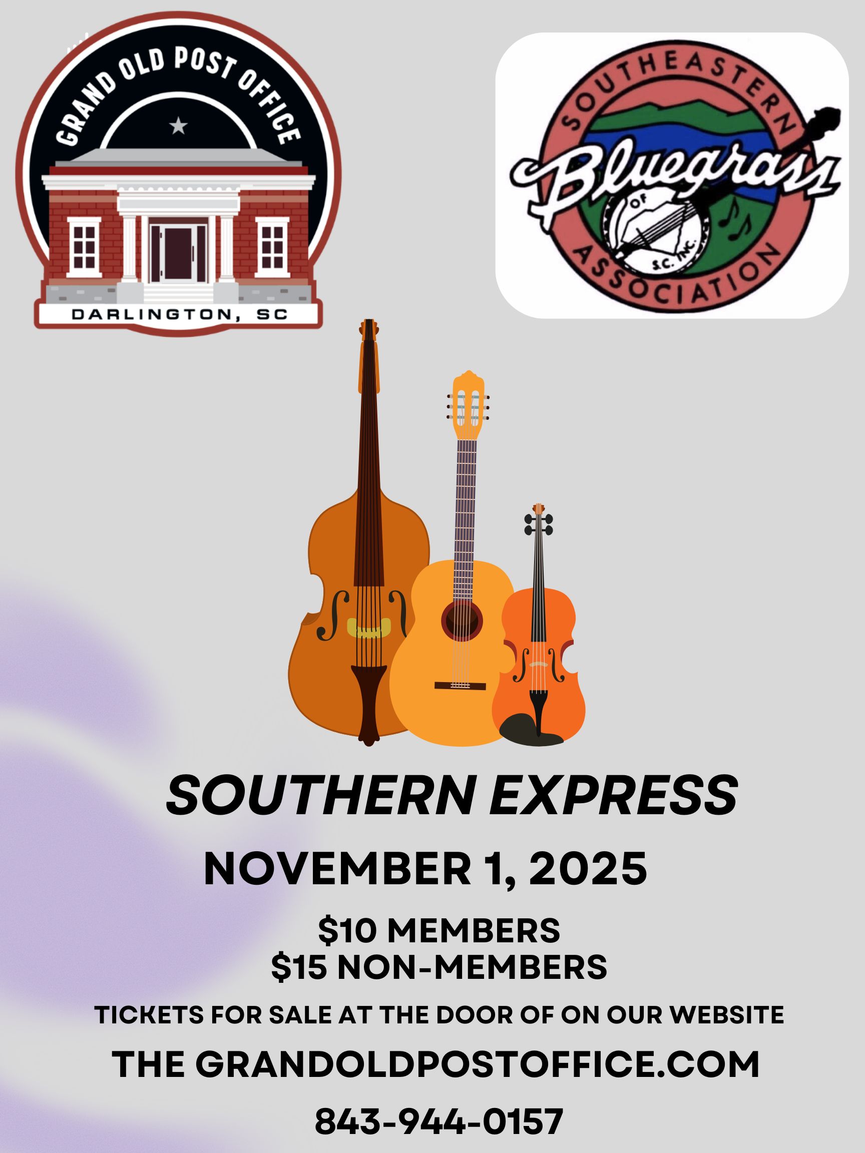 This concert is held at the Grand Old Post Office 201 Pearl St. Darlington SC